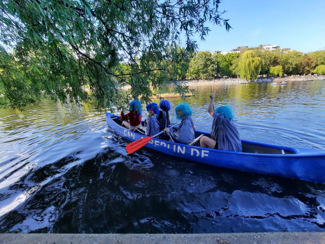 Unter Einhaltung aller notwendigen Hygienemaßnahmen widmen die Performer:innen der Global Water Dances Berlin am 11.6.21 ihren Tanz performativer Utopie. Im Geiste des Solarpunks suchen sie nach positiven Zukunftsvisionen - von verdurstenden Bäumen, Egomanie, Profitdenken hin zu ästhetischem Spiel und den Möglichkeiten des Wandels durch gemeinsames Handeln.
